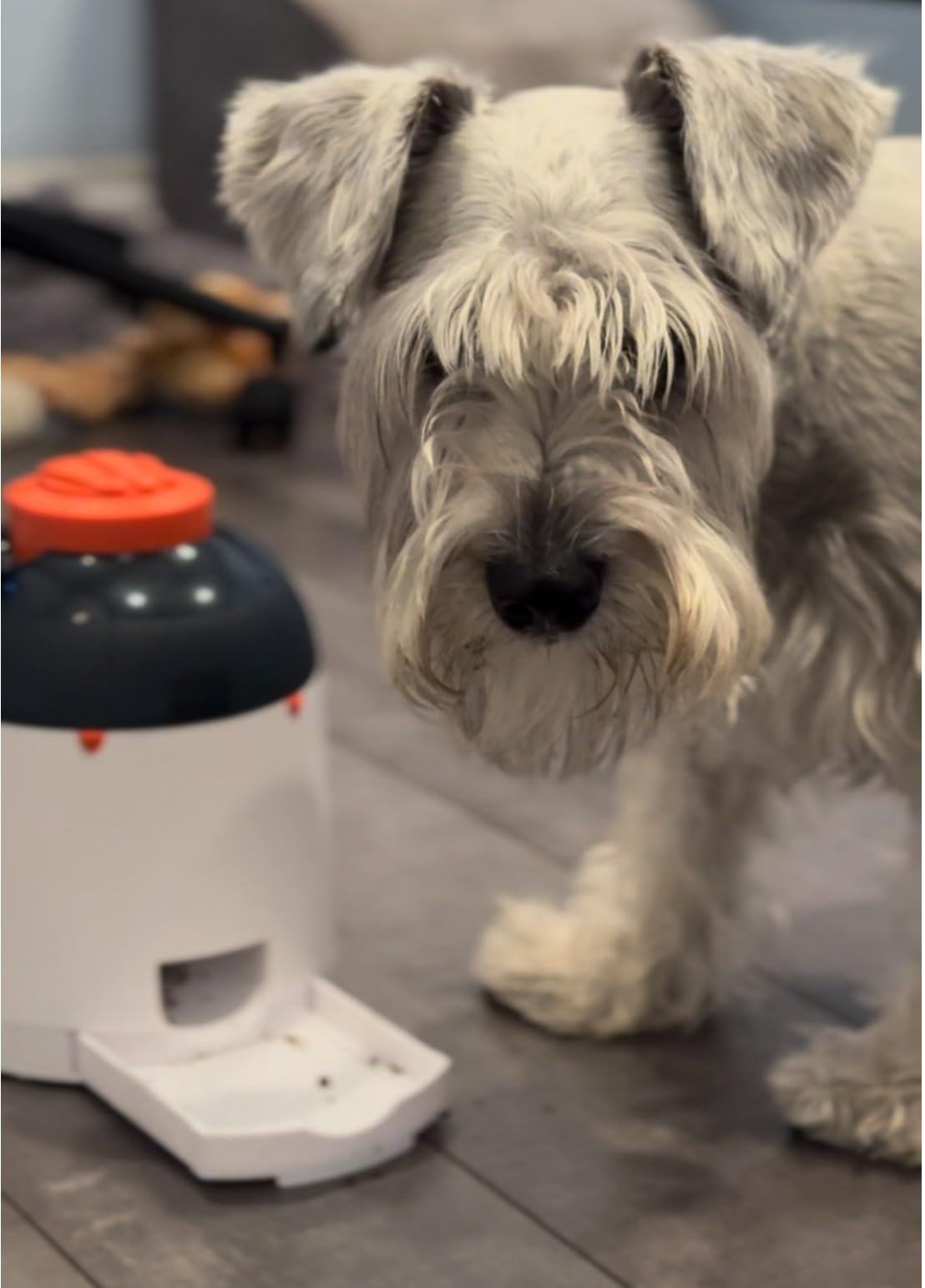 The feeder includes an adjustable dispensing slider, allowing you to set how much kibble comes out per release. This lets you use various kibble sizes and control whether it dispenses one treat or several at a time.