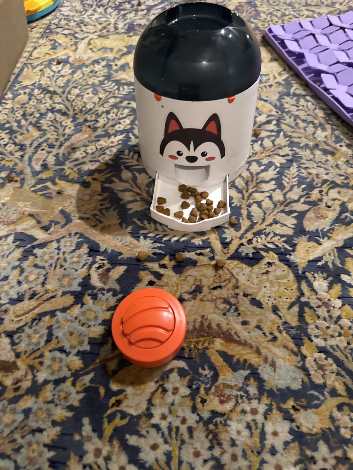 The feeder has a large internal container that holds enough kibble or treats for multiple play sessions. It comfortably fits most small-to-medium dry kibbles without needing frequent refills.